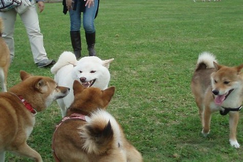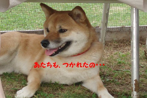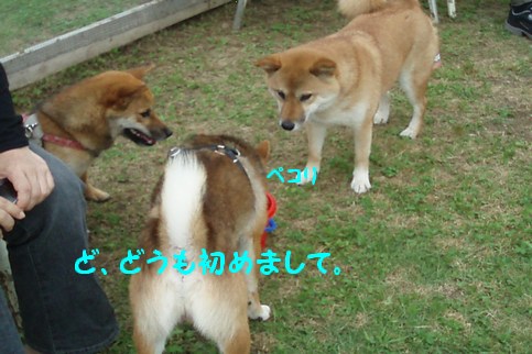 途中、白柴のチョビ君が遊びに来てくれましたが・・・