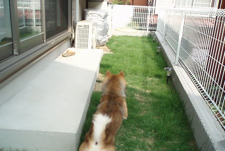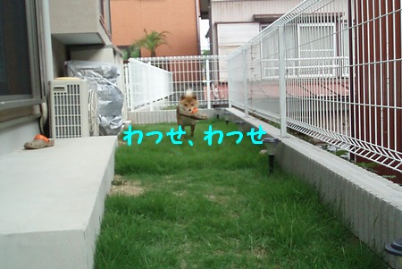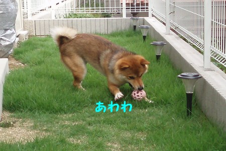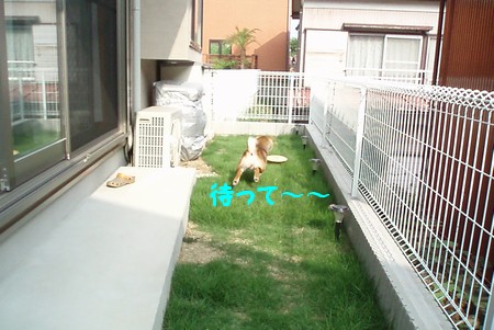 今日もムシムシ暑かったので、散歩までの時間チョコッとお庭で遊んでみました